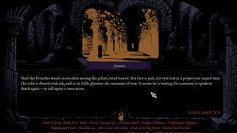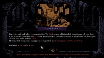 In Darkward, tu guidi il Vagabondo attraverso sanctuari desolati e tombe dimenticate, navigando interamente attraverso testo cliccabile. Non ci sono comandi digitati, indicatori di missione o istruzioni esplicite. Invece, la narrativa si sviluppa in frammenti—inscrizioni, reperti e indizi ambientali che richiedono attenta lettura e interpretazione.
